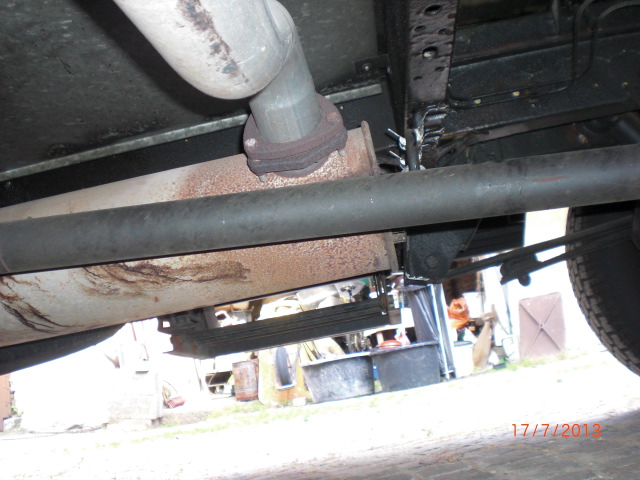 Auf diesem Anschluss lastet nahezu der gesamte Auspuff, der sonst in Gummiringen federnd aufgehängt ist.
