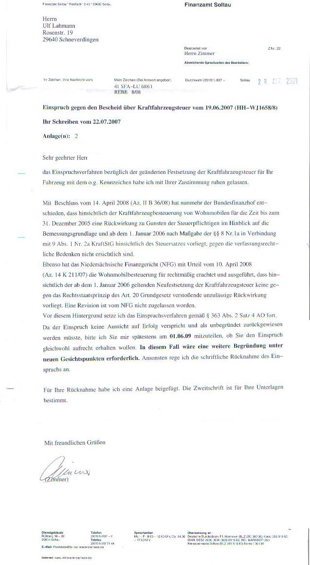 ich Hab, (wie hoffentlich alle) Widerspruch gegen den Kraftfahrzeugsteuerbescheid eingelegt. Nun hab ich vom Finanzamt folgenden Beschei erhalten ( s. Anhang).