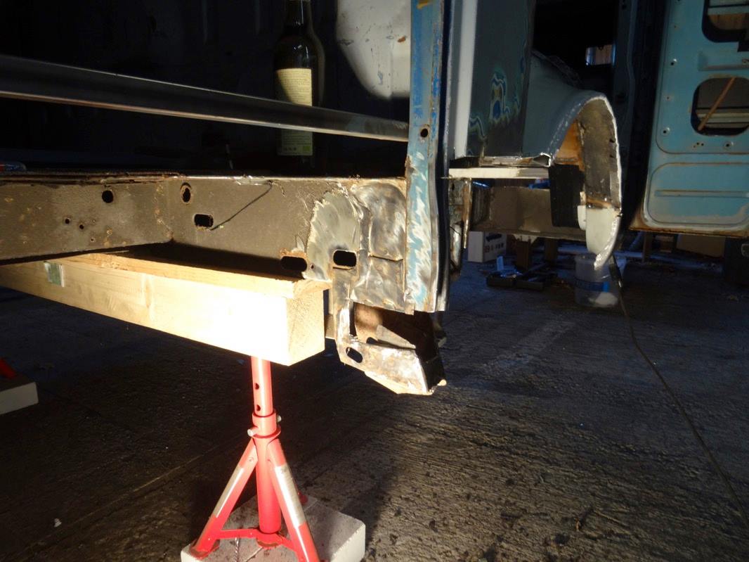 Gestern bin ich noch bis zum Einpassen des Radlaufs und der Einstiegsbleche gekommen, aber bei der Kälte friert man sich echt den Hintern ab und so war um 1900 Feierabend.