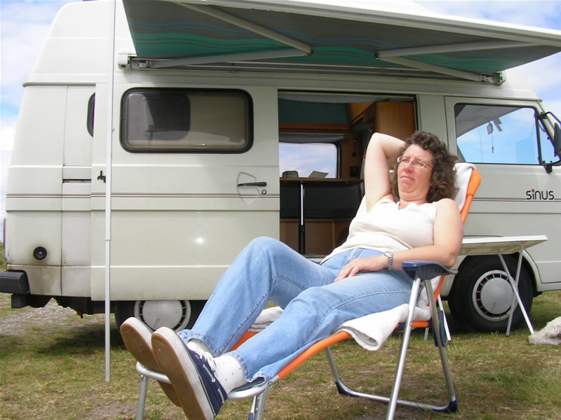 Belohnt wird man mit einem wunderschönen naturbelassenen Parkplatz (Wiese mit Müllentsorgung). Es sind drei riesige Grasplätze vorhanden, Vorzelt und Windschutz aufbauen – alles kein Problem. Allerdings kann man nichts vorreservieren - bei dem vielen Platz sollten wir es trotzdem schaffen zusammenzustehen.